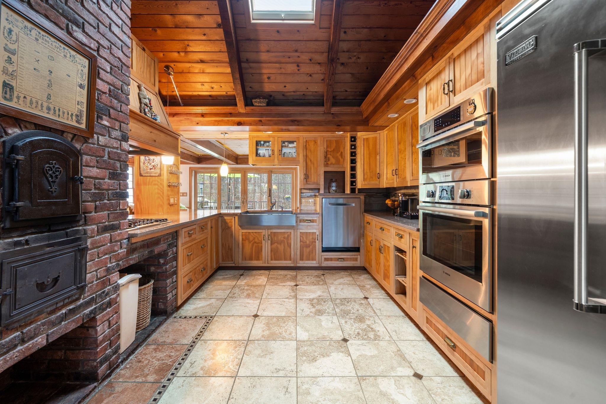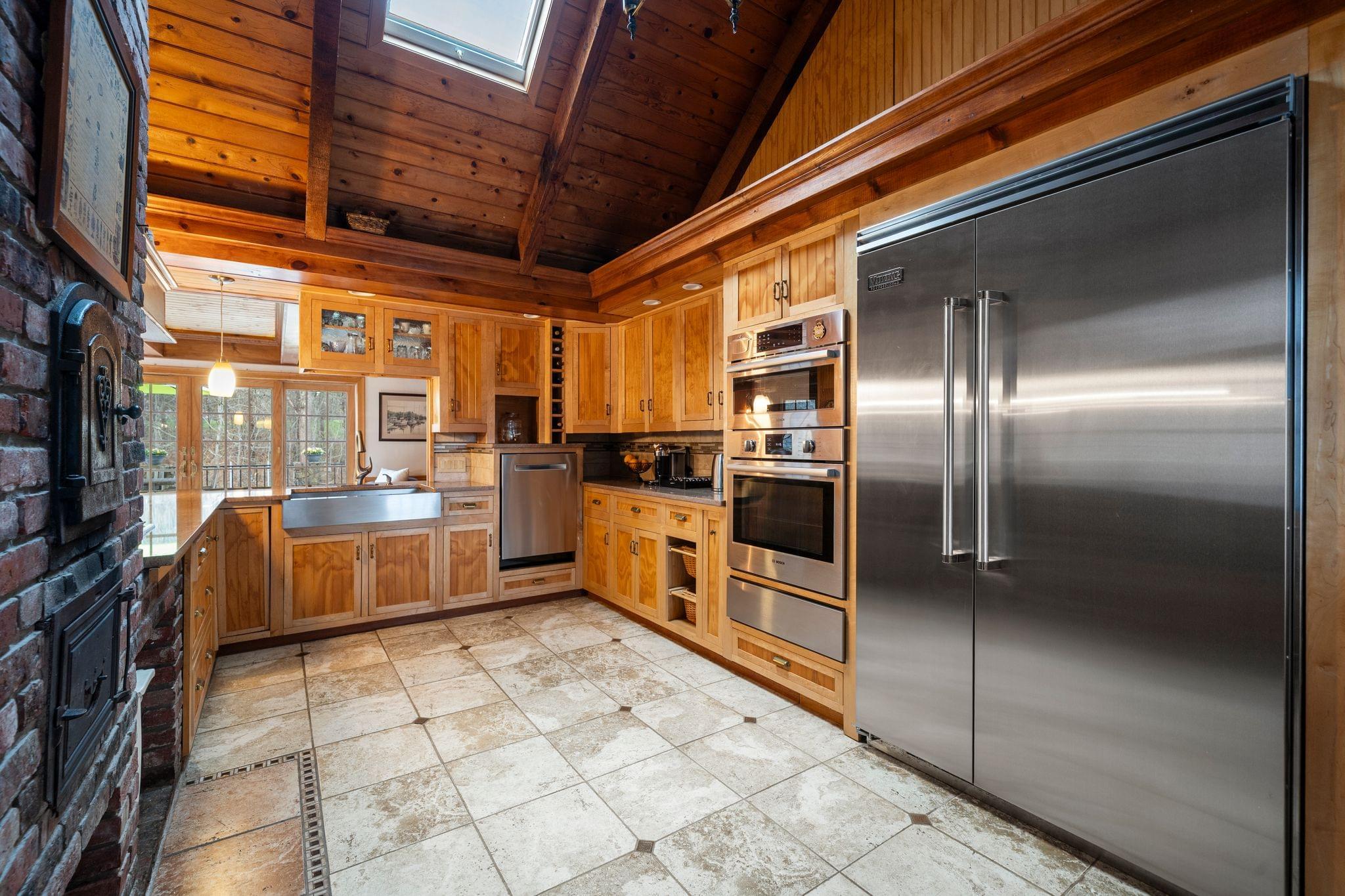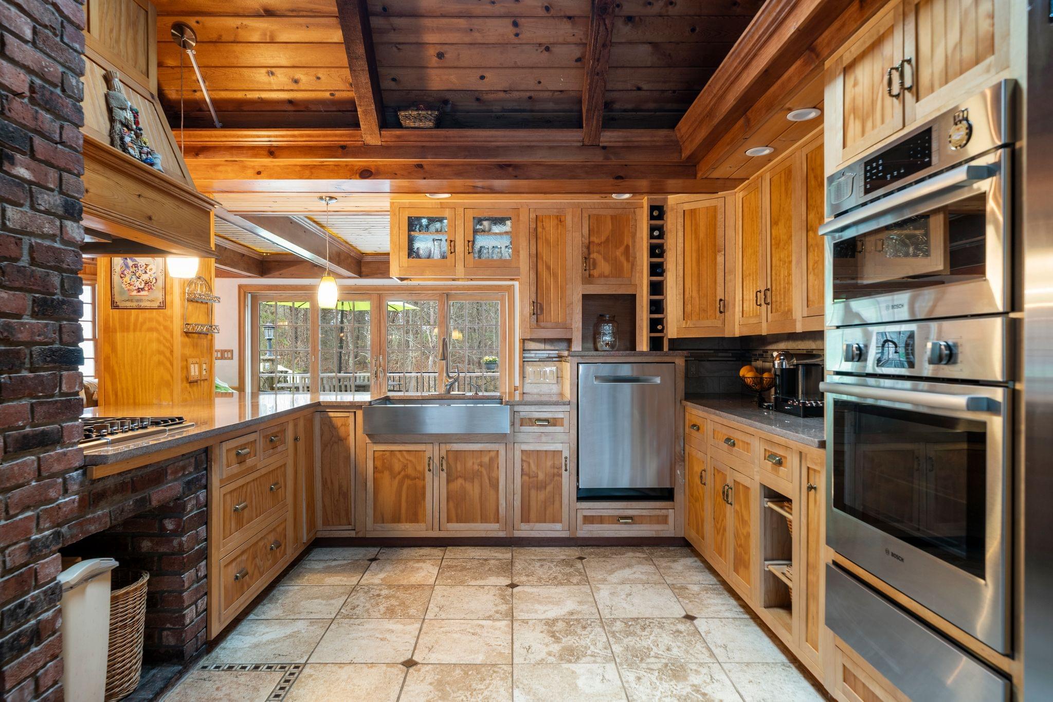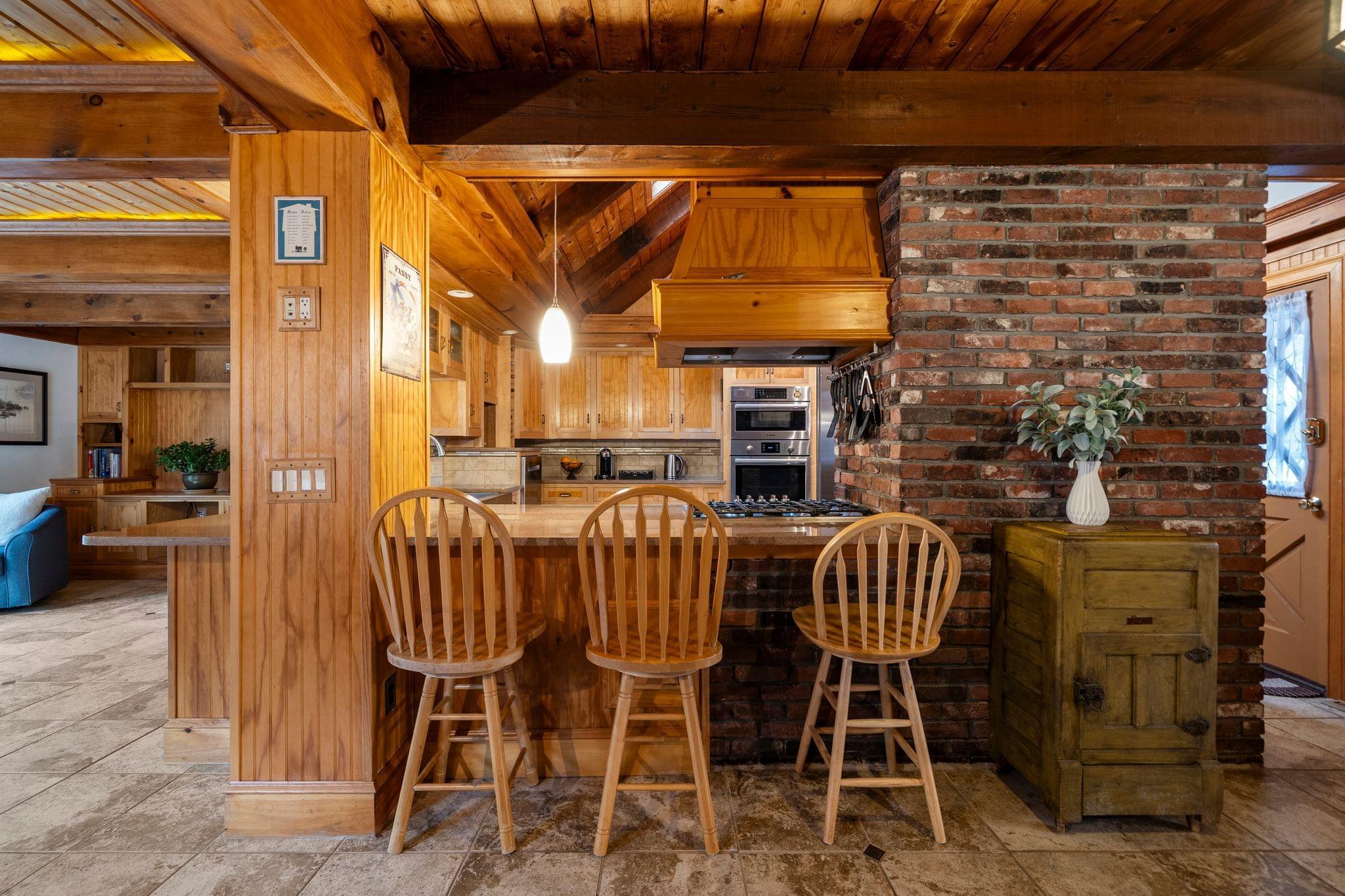 The kitchen blends function with personality, offering ample cabinetry, quality appliances that will remain, and a layout that works seamlessly with the surrounding living spaces. The natural materials and warm finishes continue here, making it a place that feels connected to the rest of the home while still serving as a highly practical everyday space.