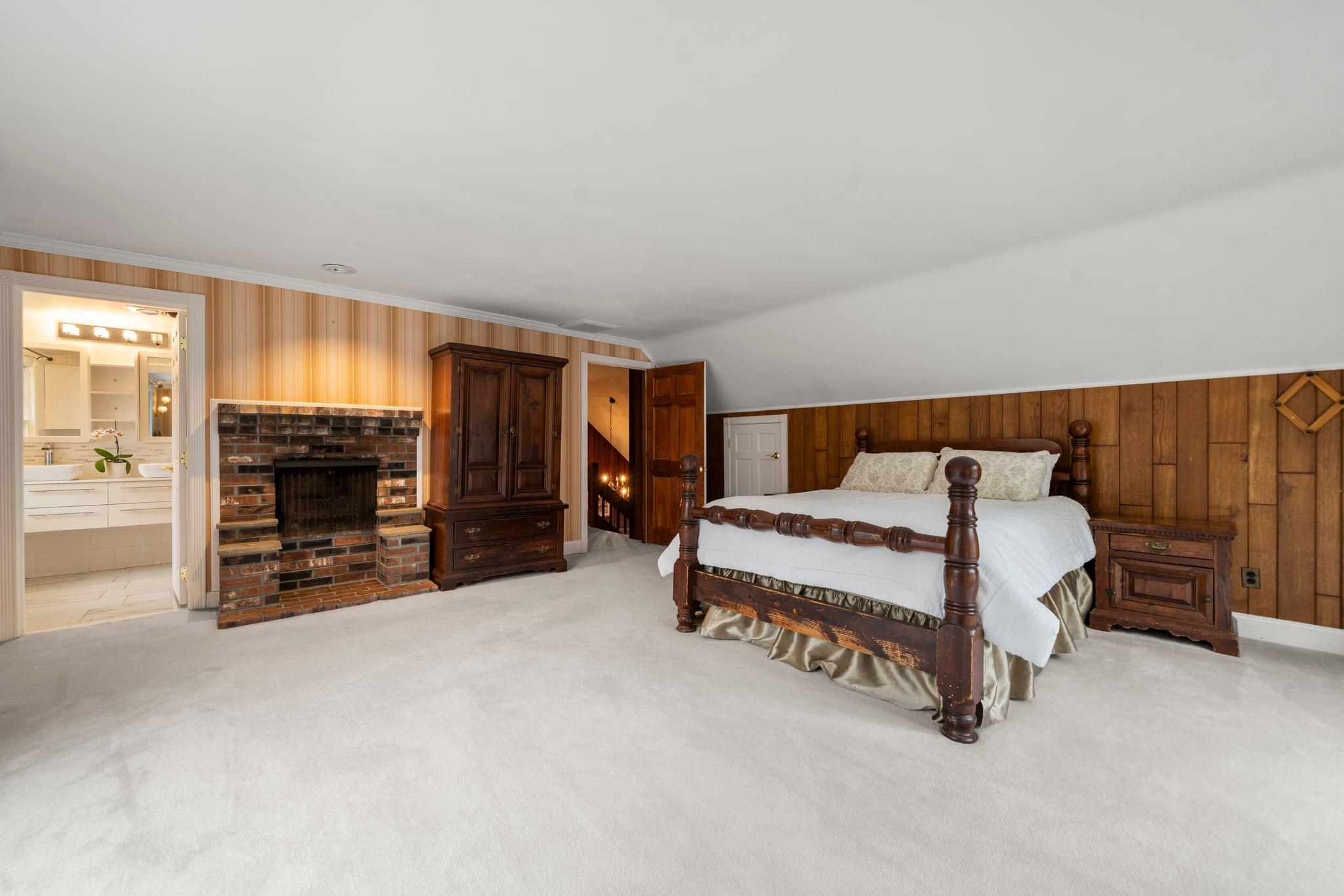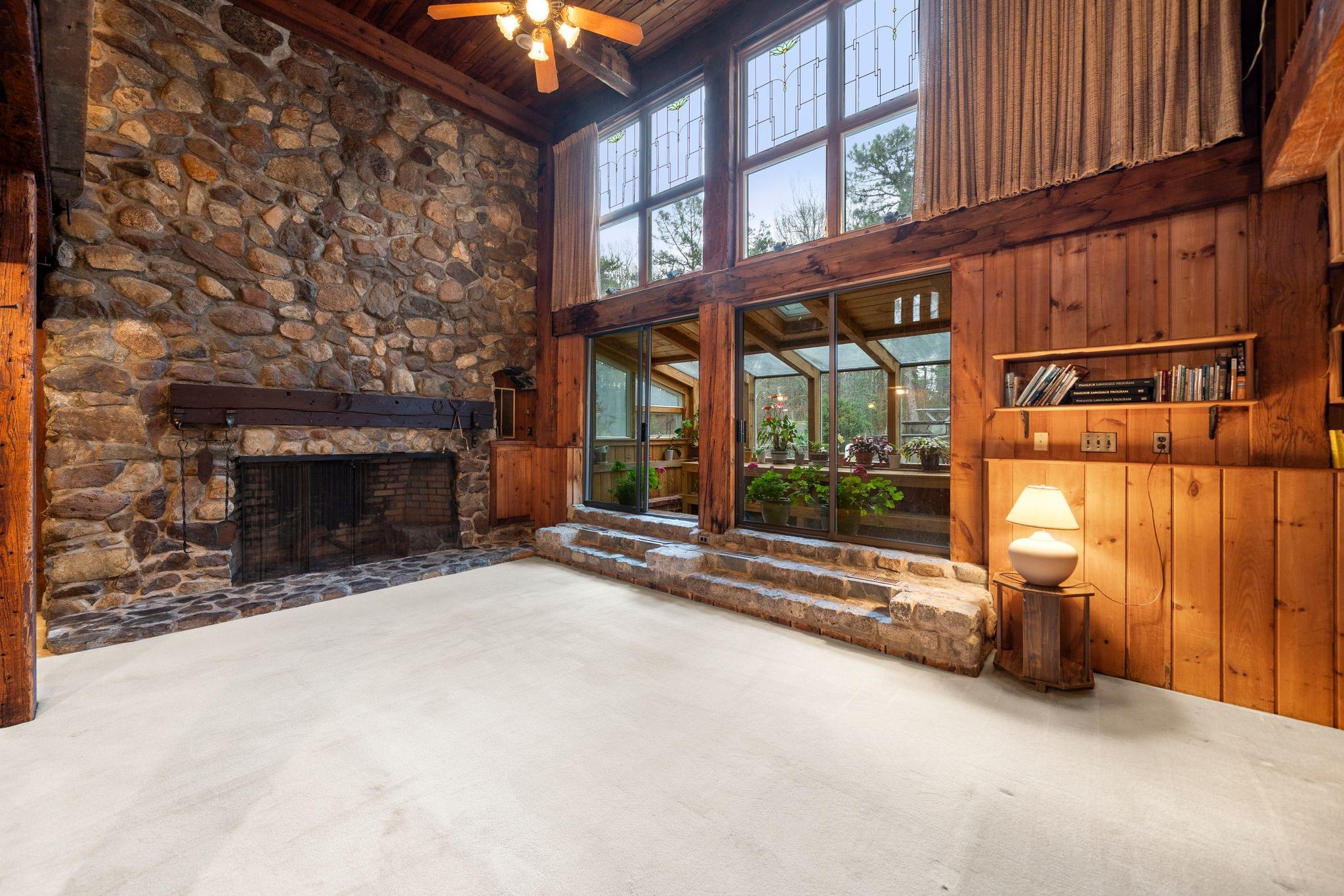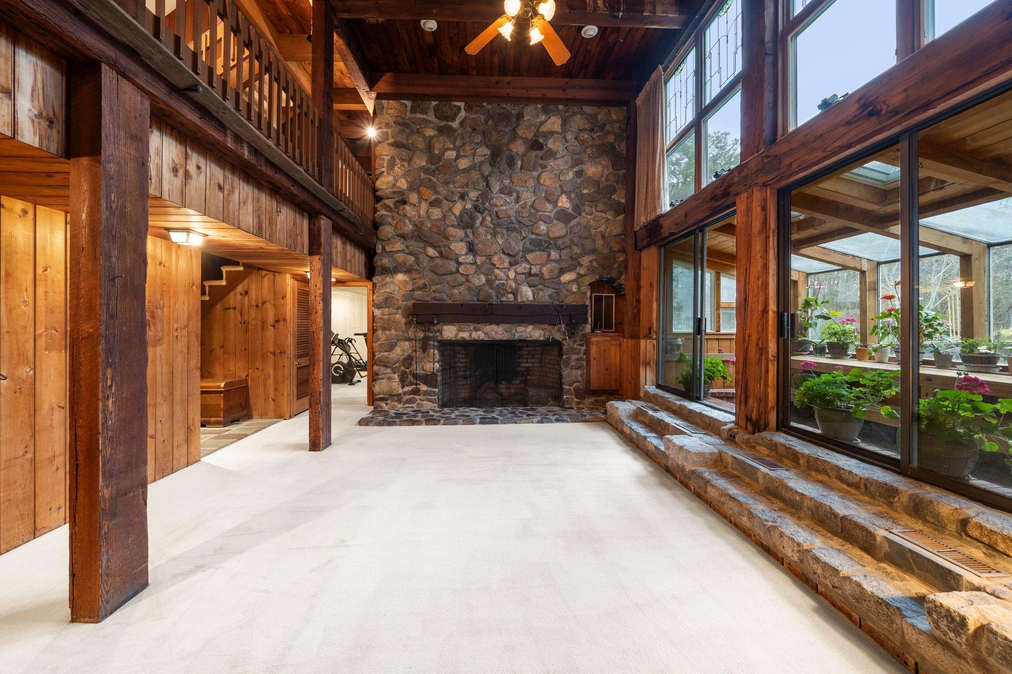 At the center of the home, a striking stone fireplace anchors the main living area. It naturally draws your attention and sets the tone for the space. Whether it’s a quiet night in or a gathering with friends and family, this feature creates a warm and inviting atmosphere that makes the home feel lived in and memorable.