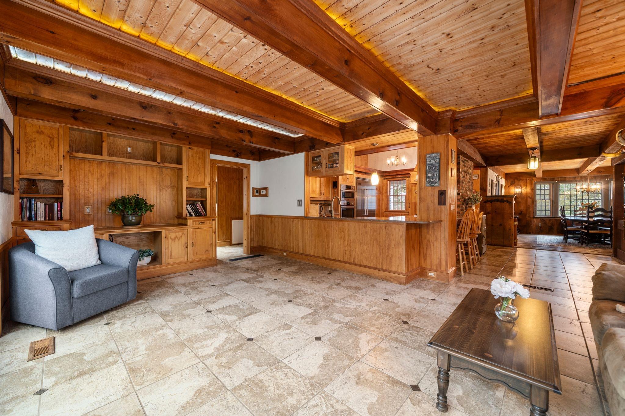 From the moment you walk in, you’re surrounded by rich natural wood tones that completely transform the feel of the home. Walls, ceilings, and built-ins come together to create an environment that feels warm, grounded, and unlike anything you typically see. This is not a cookie-cutter interior. It’s thoughtfully designed, full of texture, and creates a sense of comfort that you feel immediately.